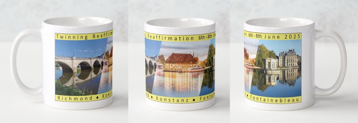The Richmond in Europe Association has commissioned commemorative mugs to publicise & celebrate the occasion. These can be purchased, at a cost of £5 each, from Twickenham Museum, the Landmark Arts Centre in Teddington or from the Museum of Richmond, which is in the Old Town Hall in Richmond. The museum can be found on the top floor of the old town hall in Richmond, above the reference library.