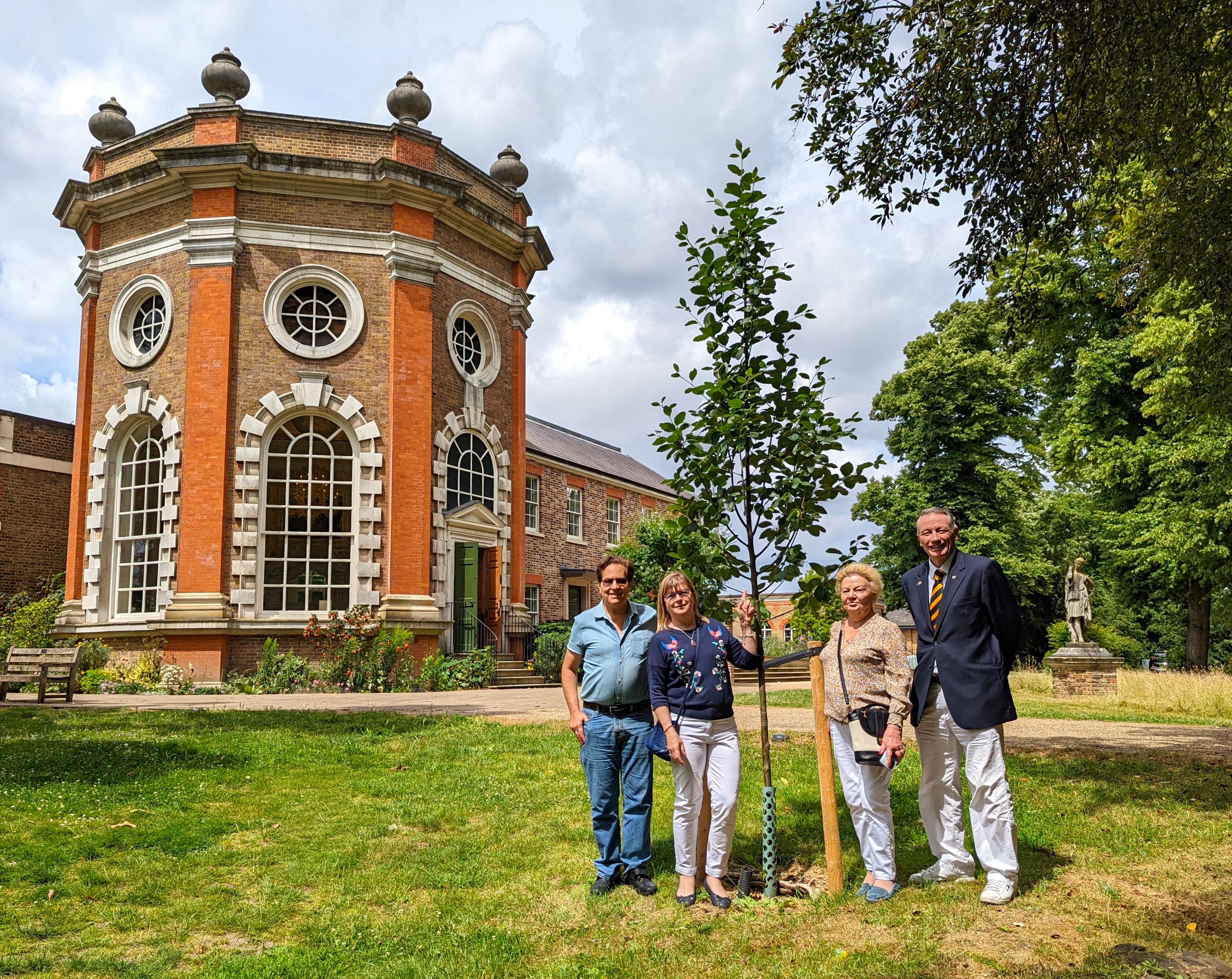 L-R. Members of REA & ARCIF with a service tree of Fontainebleau which was planted beside Orleans House Gallery.