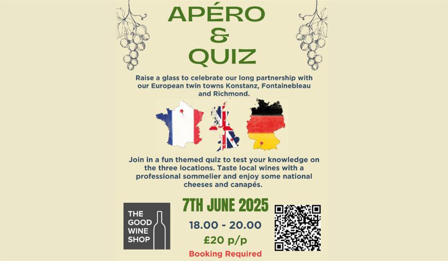 6-8 p.m. An Apéro & quiz with French, German & English wine tasting at the Etna Centre, 13, Rosslyn Road, East Twickenham. £20 per person. Booking required via this link.
