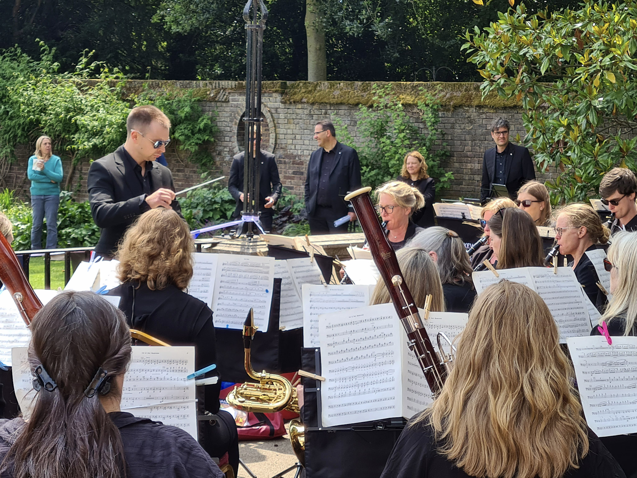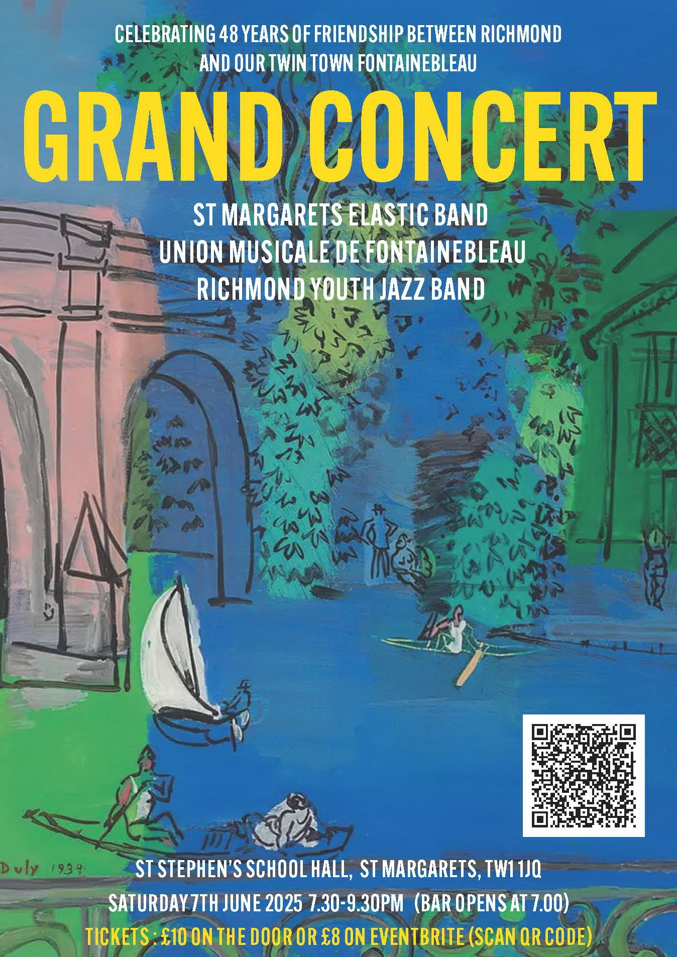The musicians playing at the start of the film are from St. Margaret’s Elastic Band & Union Musicale de Fontainebleau, who are twinned. The European Youth Orchestra seen later comprises young musicians from Fontainebleau, Konstanz, Richmond & Lodi. They will be performing in Richmond in 2025.
