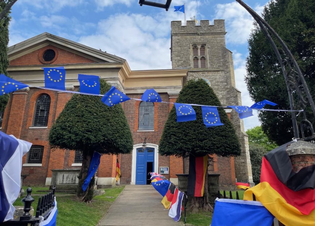 St. Mary’s Church bedecked with European flags for the recent European Friendship Concert.
