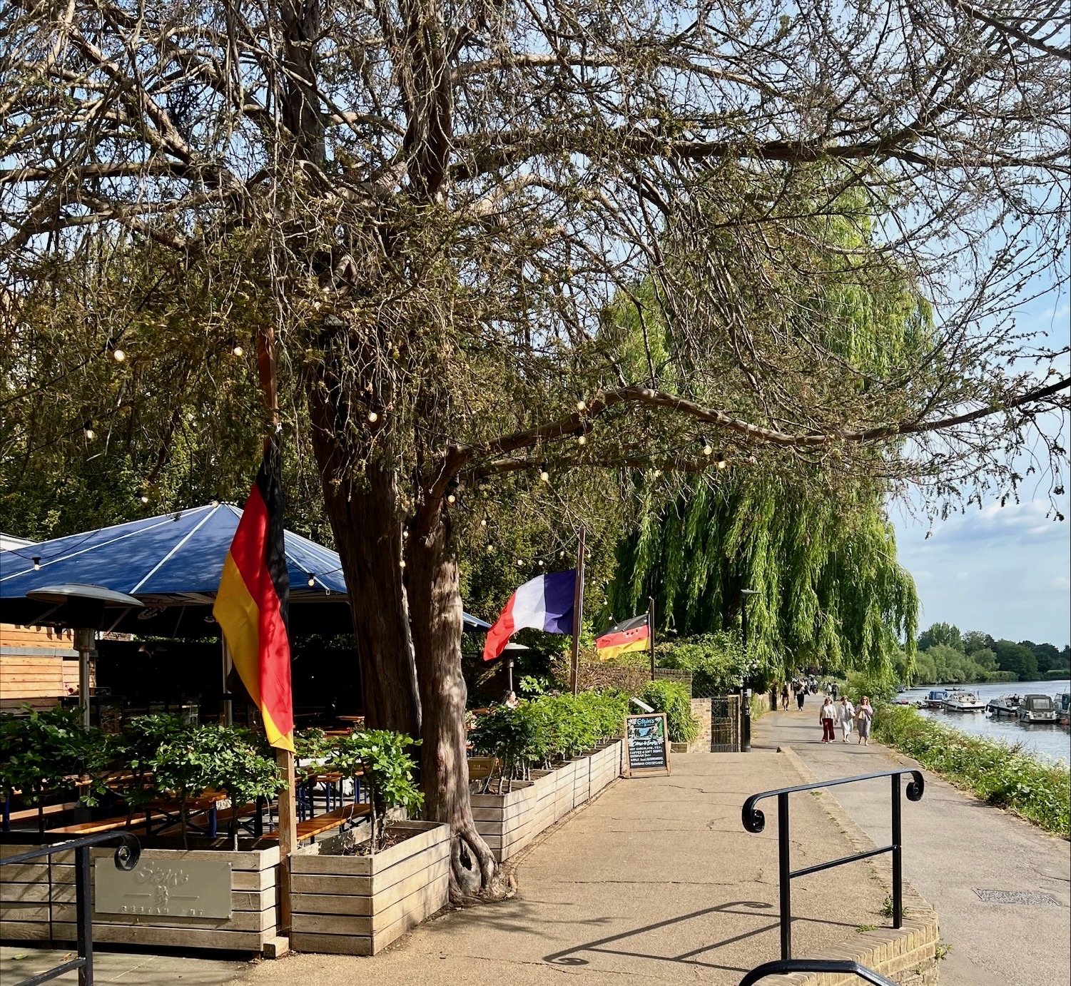 Stein’s enjoys an idyllic location on Richmond Riverside.Stein’s is already hanging out the flags for our visitors.