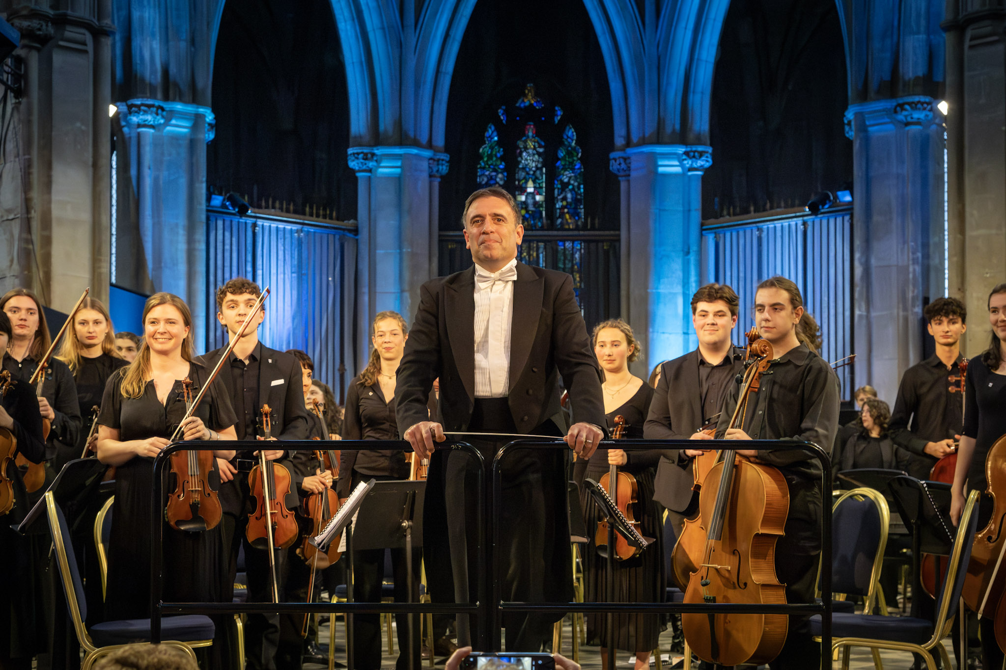The European Youth Orchestra with the French conductor, Fabrice Fortin. Photo: Whitton Photographic Club