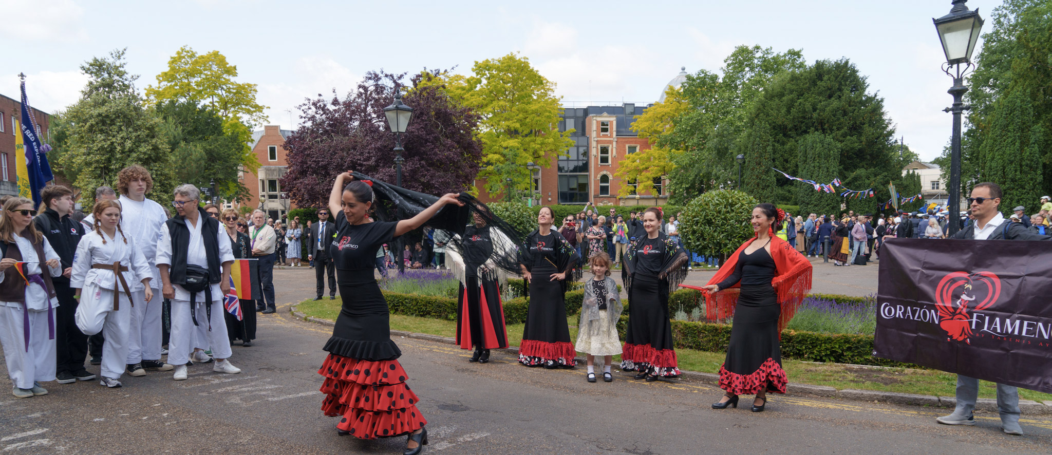 The parade was led by a Konstanzer, a Bellefontain, a Richmond scout & a German living in Richmond. Photo: Whitton Photographic ClubThe Fahnenschwinger from Konstanz. Photo: Whitton Photographic ClubThe Scouts from Richmond Photo: Whitton Photographic ClubThe Firefighters from Konstanz. The Firefighters in Konstanz & Fontainebleau began the twinning in the 1950s. Photo: Whitton Photographic ClubThe Air Cadets. Photo: Whitton Photographic ClubThree of the flags based upon the 6 European values of Democracy, Freedom, Equality, the Rule of Law, Human Rights & Human Dignity, designed by the delegates at the international youth conference in Konstanz in May. Photo: Whitton Photographic ClubPhoto: Whitton Photographic ClubFrench country dancers. La Bourrée du Coucou. Photo: Whitton Photographic Club