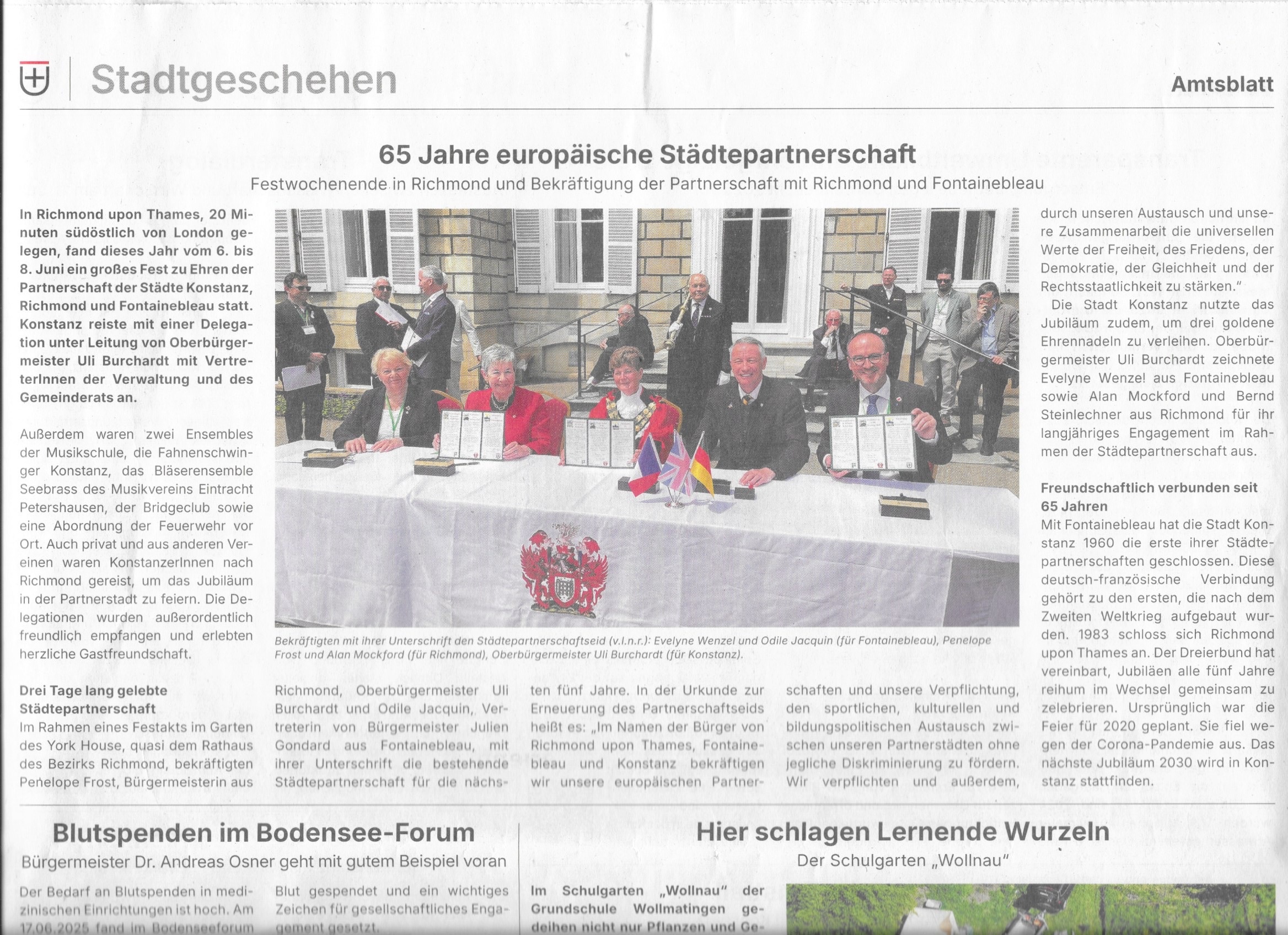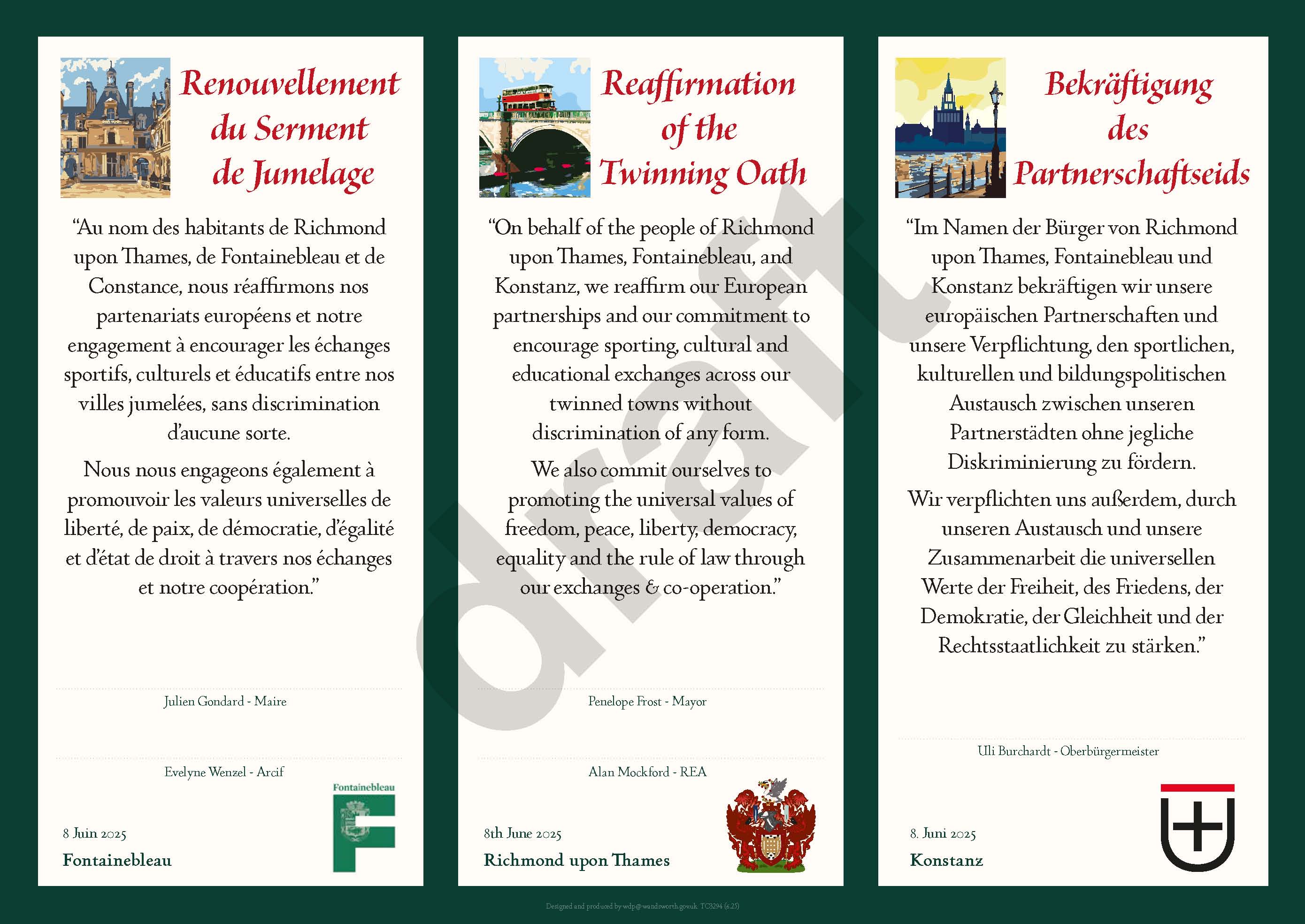 Many Richmond clubs & associations already have partners in Fontainebleau & Konstanz & will be arranging joint activities. However any club or association can participate in the weekend of festivities from 6th -8th June 2025 simply by adopting a French or German theme.