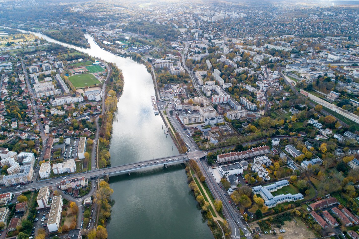 A bird’s eye view of Le Pecq which lies on the Seine 19 km west of Paris.