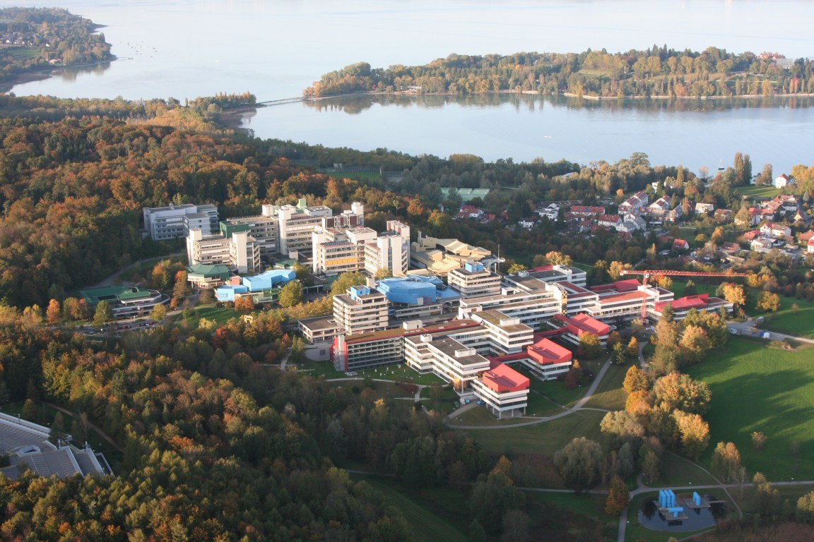 Konstanz from above. The old town lies to the left of the Rhine. The university overlooks the garden island of Mainau on the right. The island of Reichenau can be seen in the background. Photo: Achim Mende