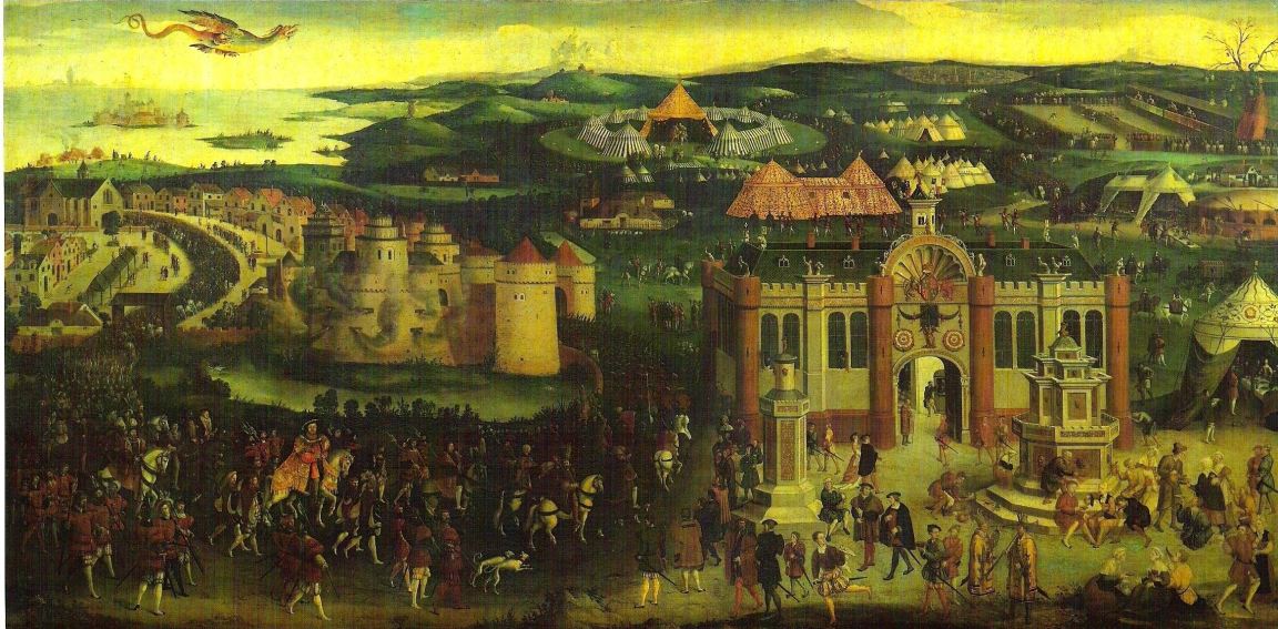 “The Field of Cloth of Gold” painting can be seen in Hampton Court Palace.