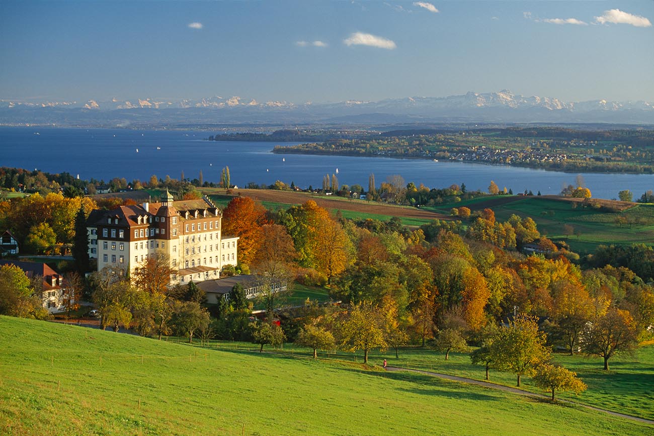 Prinz Philip’s school, die Schule Schloss Salem on the shores of Lake Constance, with Konstanz & Säntis in the background.