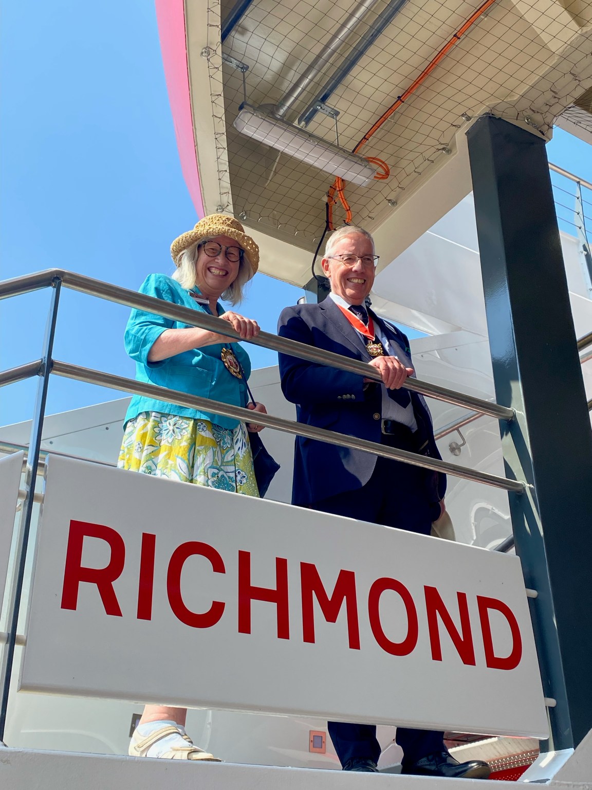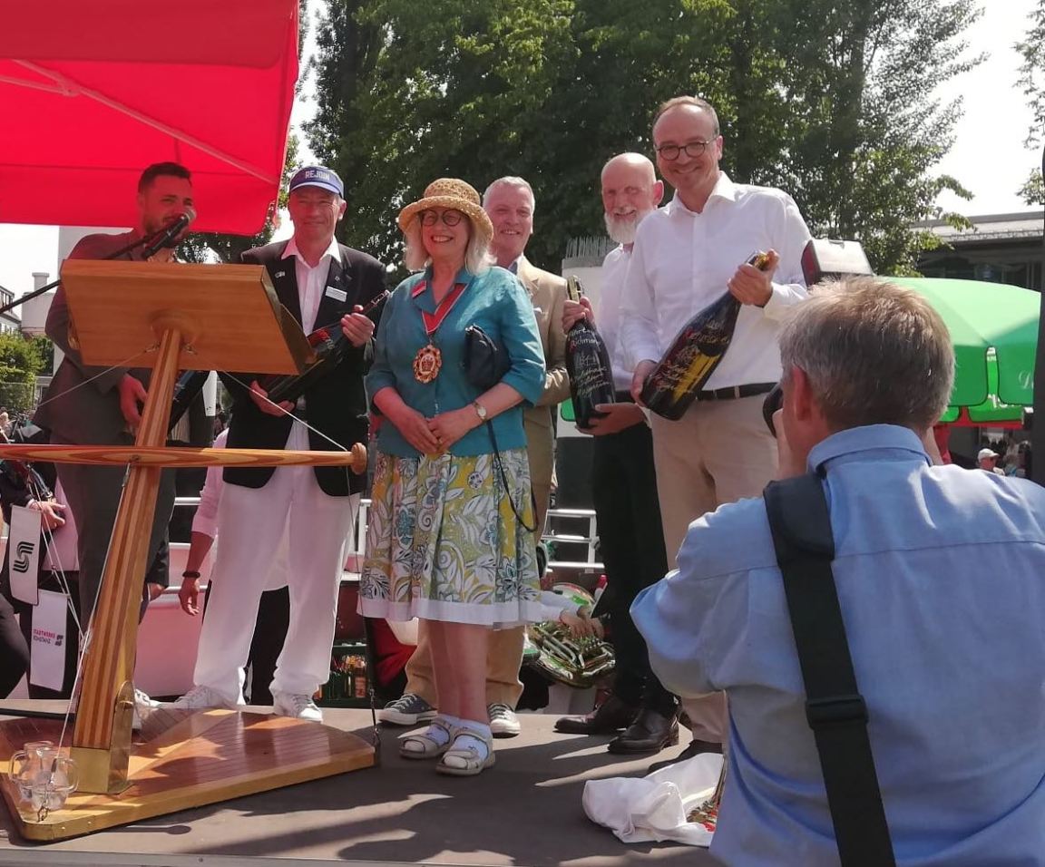 17th June 2023. The Mayor of Richmond and REA Patron, Cllr. Suzette Nicholson, christened the new car ferry across Lake Constance, “RICHMOND” after Konstanz’s twin town. The ship was baptised with water from the Bodensee & Thames, thus making the twin towns blood/water brothers.
