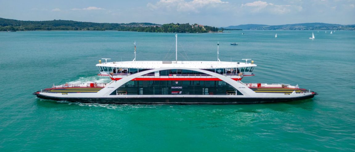 4th October 2023. The new car ferry “Richmond” began operating between Konstanz & Meersburg today. With the Alps as a dramatic backdrop, the 20 minute crossing is one of the most beautiful in the world, experienced by over 4 million passengers per year.