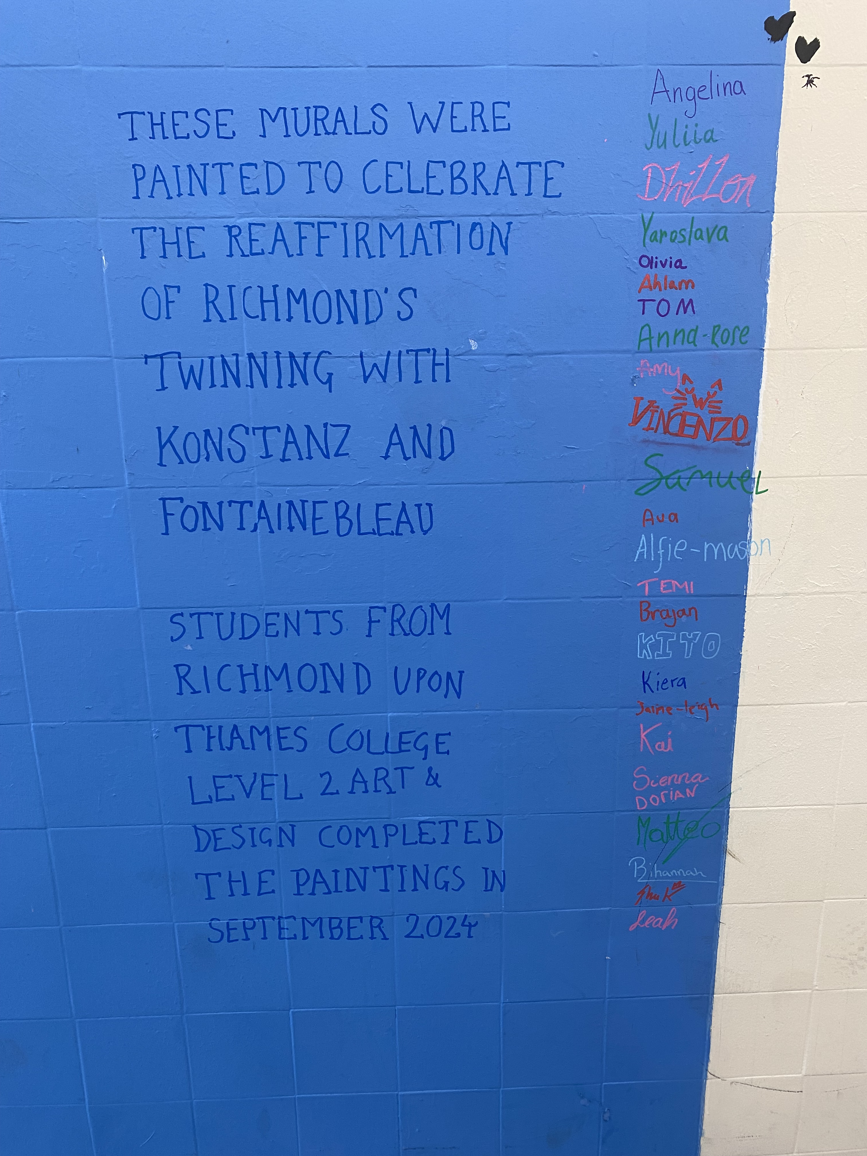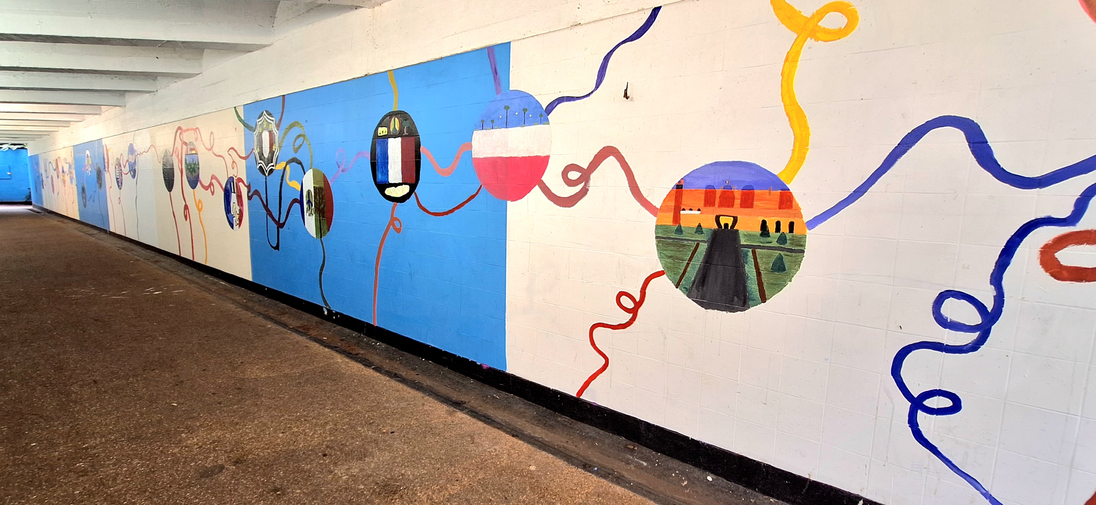 The underpass, which is used by thousands of pedestrians & cyclists every day, connects the communities of Whitton & West Twickenham. Therefore, as well as making the underpass far more attractive & raising awareness of Richmond’s international partnerships & the reaffirmation in 2025, the students’ art work also provides a pictorial symbol of the aim of our association to bring people together.