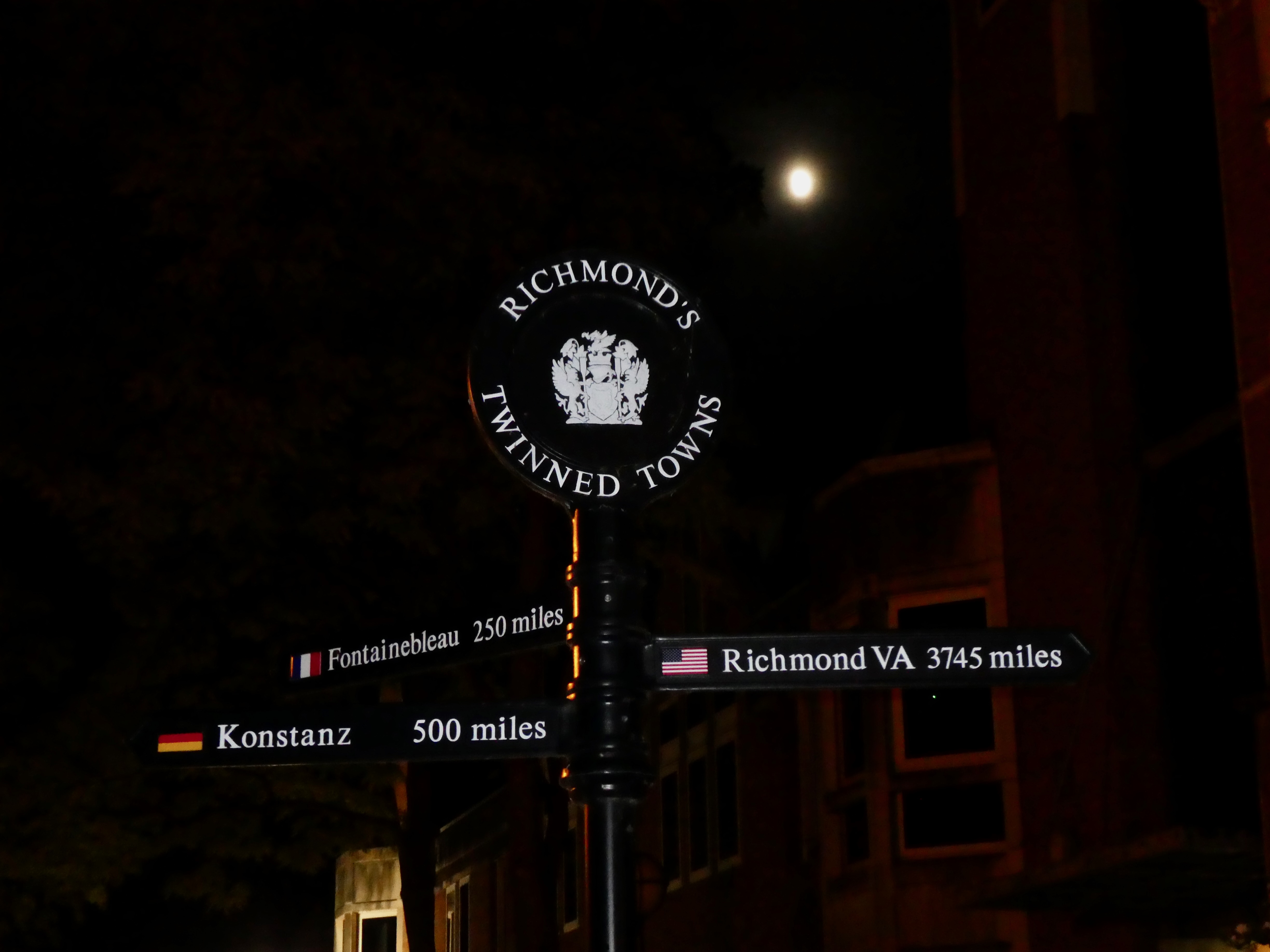 The Twinning Fingerpost sign by moonlight this evening.