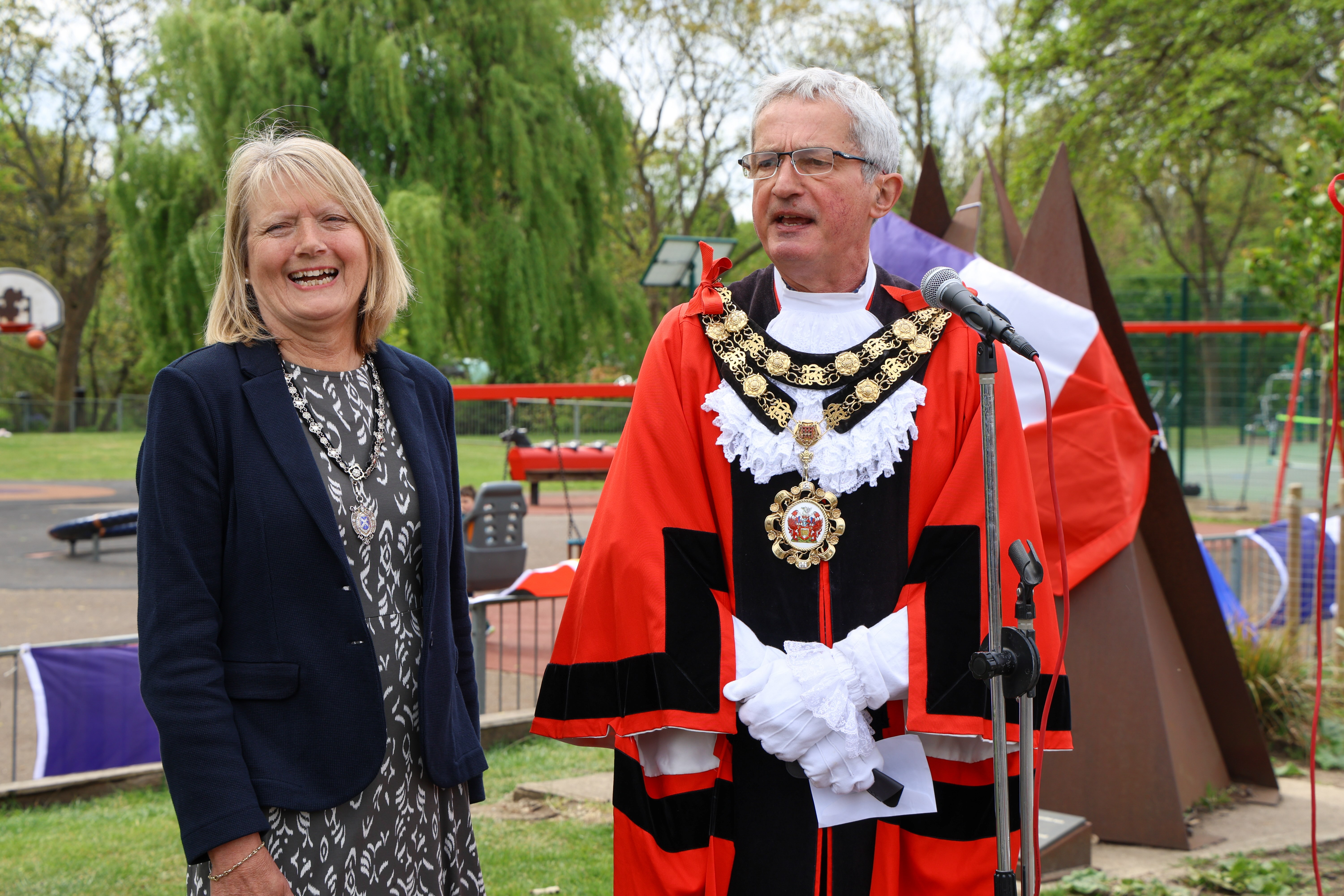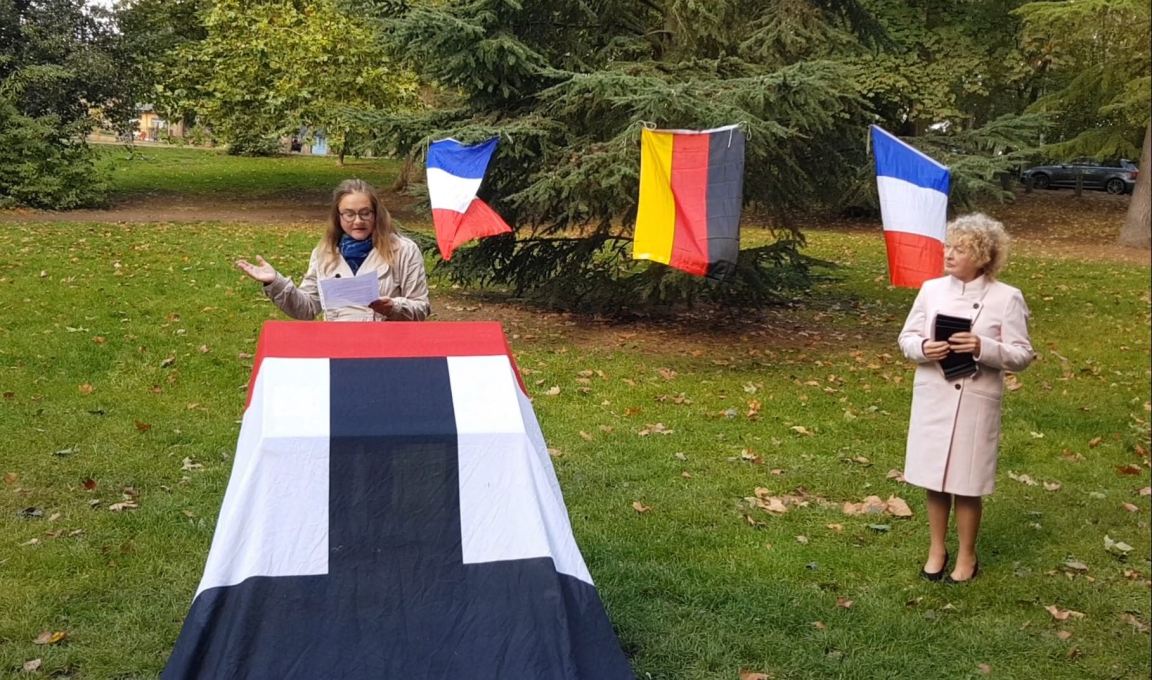 Then Frédéric Valletoux & Lisa Blakemore, the mayors of Fontainebleau & Richmond, unveiled a commemorative plaque in the grounds of Orleans House.