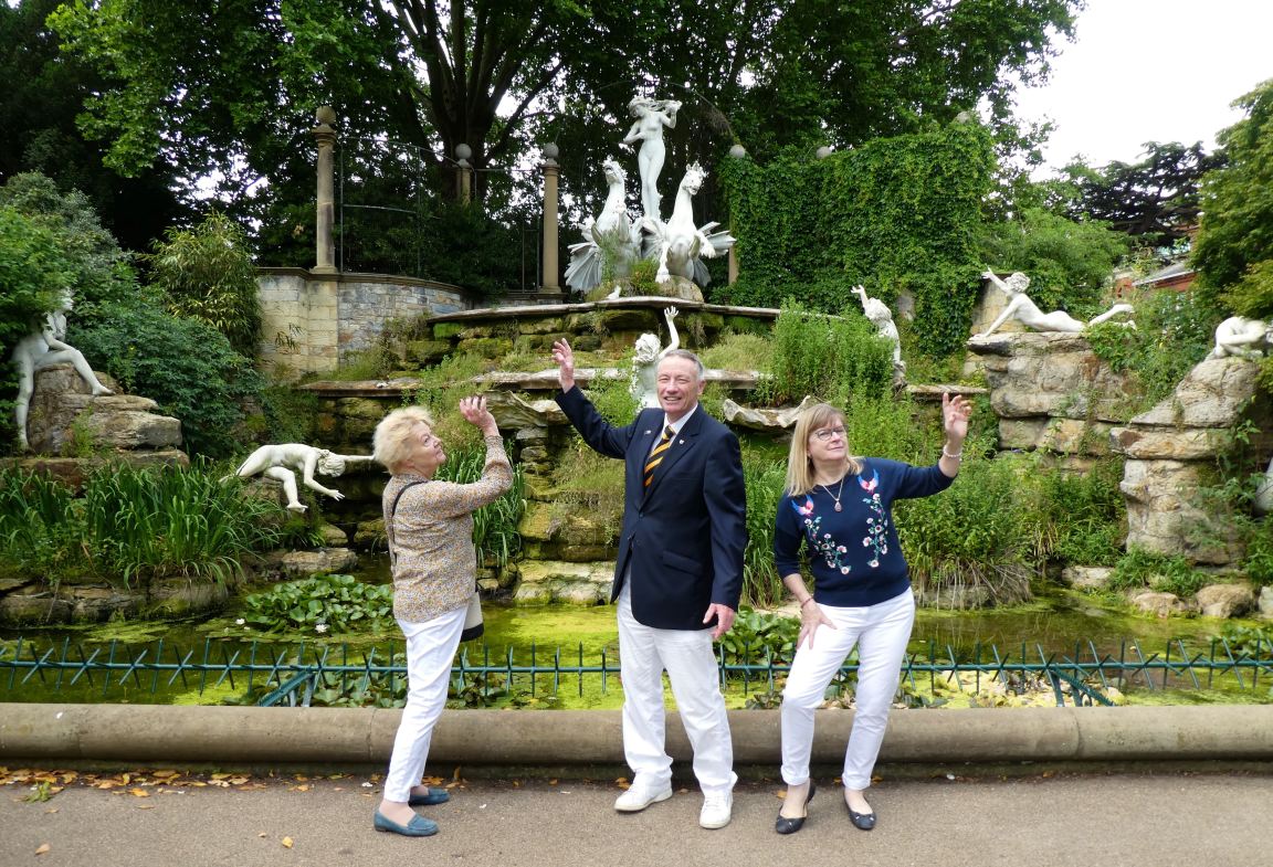 A reconstruction of Horace Walpole’s beautiful shell seat provided a suitable resting point for Claus-Dieter Hirt, representing Konstanz council, Evelyne Wenzel, the President of ARCIF, & Alan Mockford, the chairman of REA.