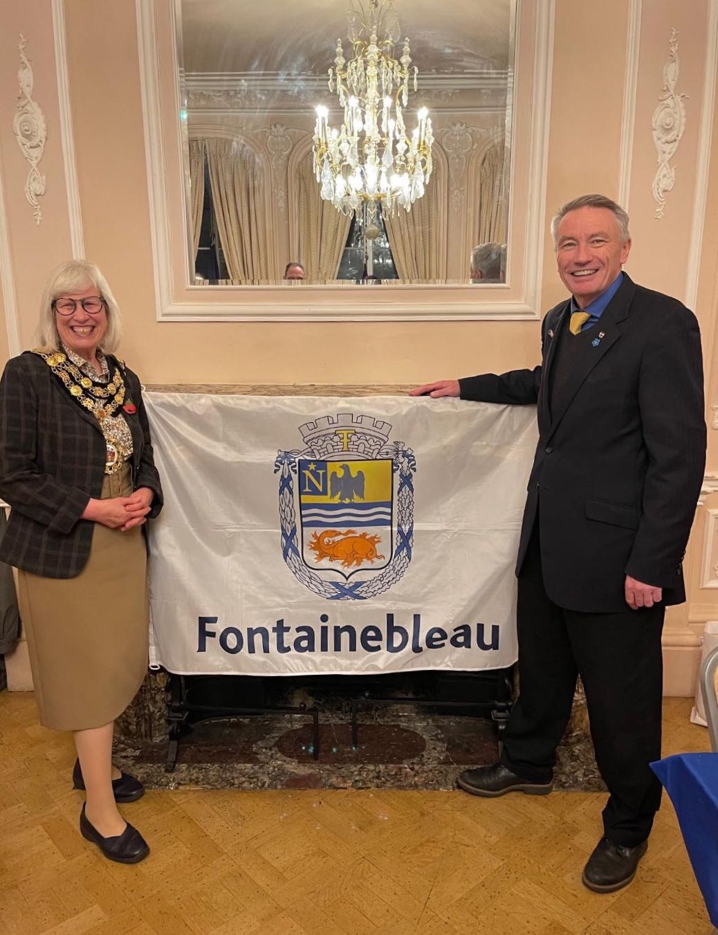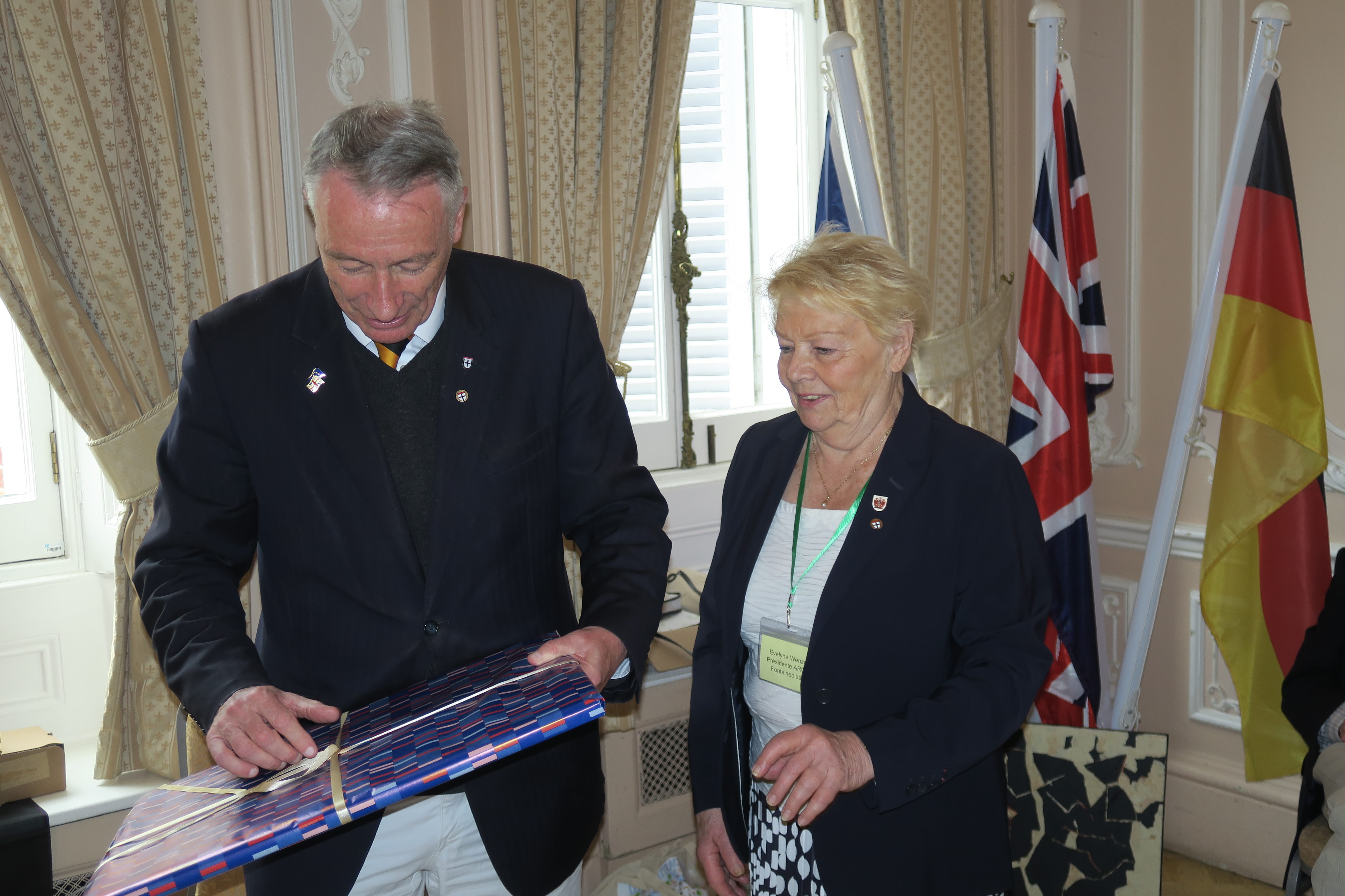 Evelyne presented REA with a beautiful engraving of Fontainebleau, (which now hangs outside the Mayor’s Parlour in York House).
