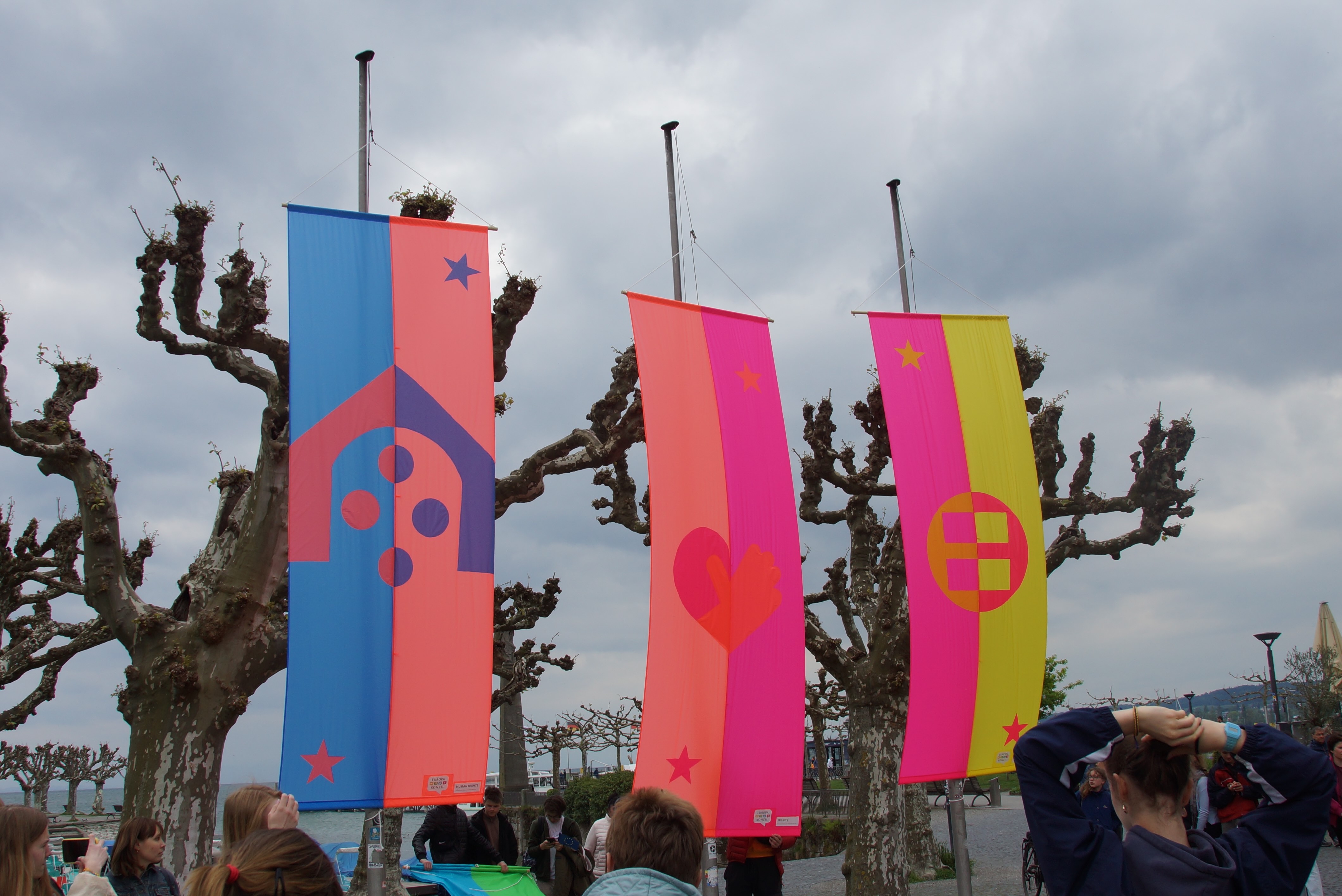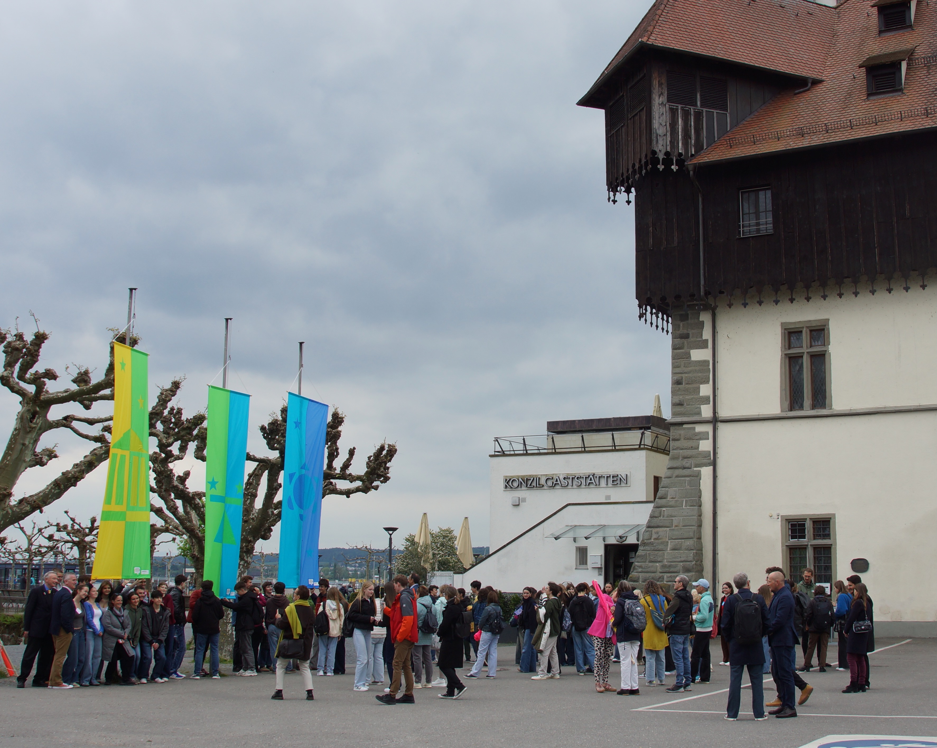 At the end of the conference the flags were hoisted beside the historic Konzil. Each town was given one of the flags to take home & fly. Richmond was given Democracy.
