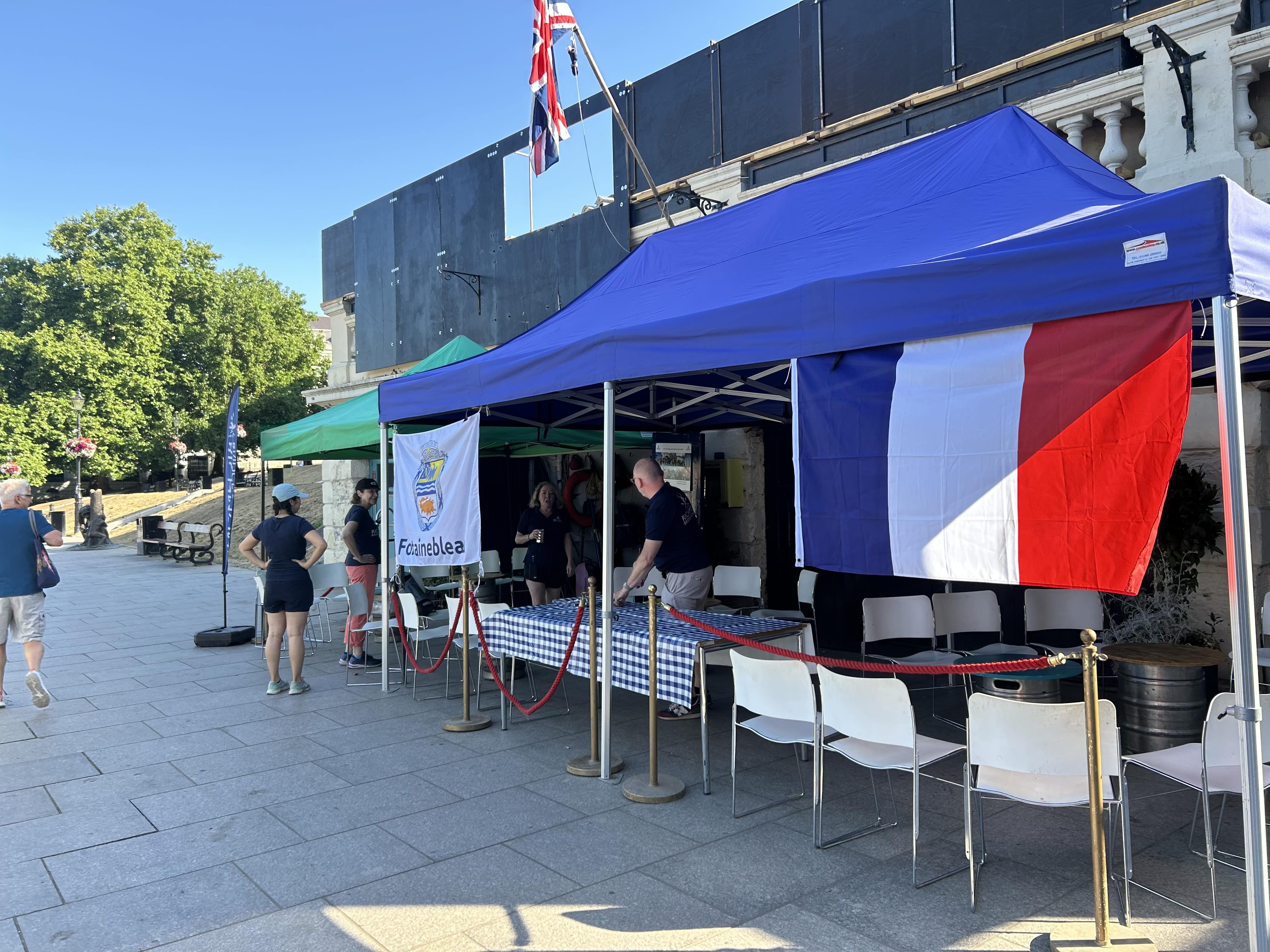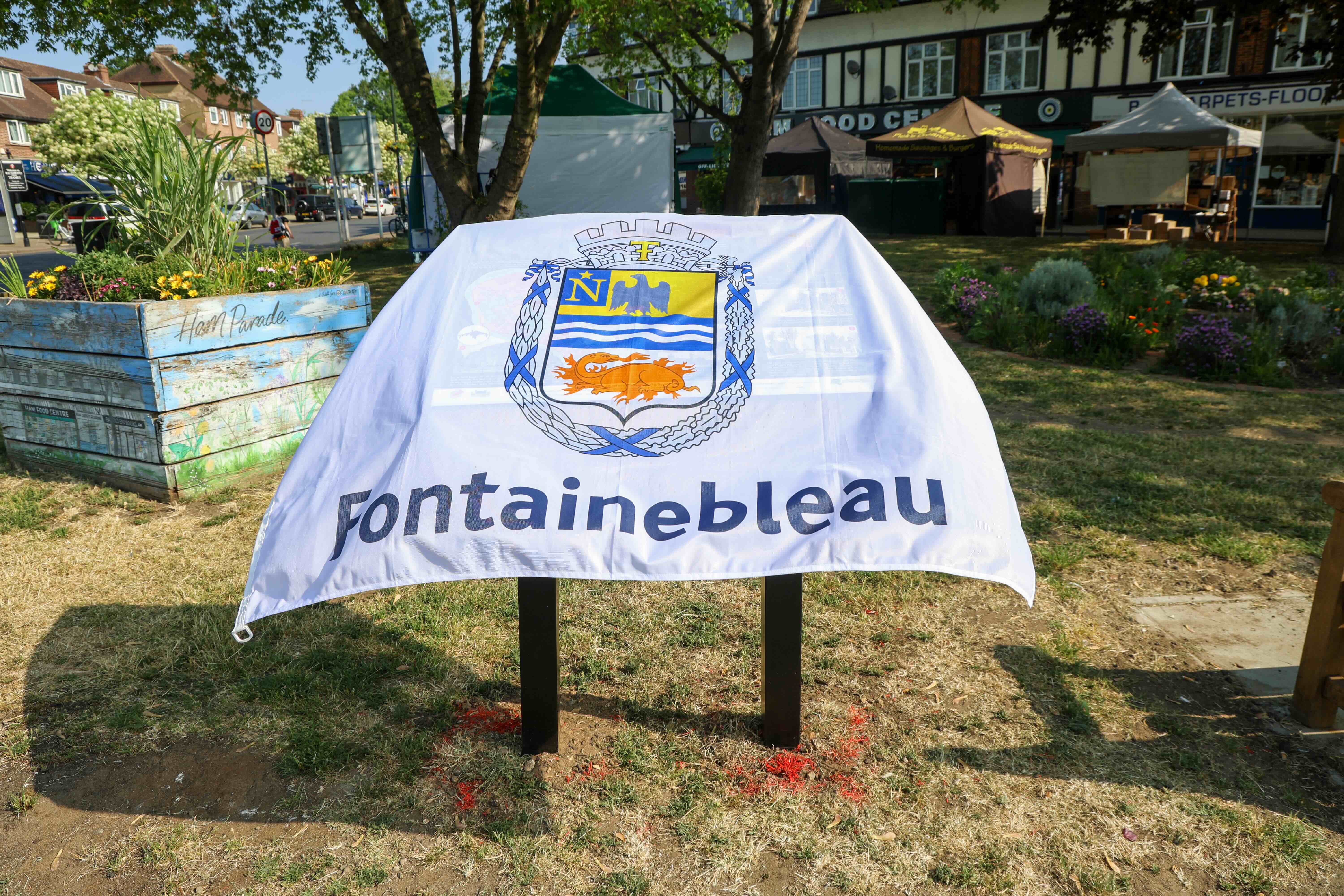 The Kneller Gardens noticeboard provided an ideal place to hang the flag of Fontainebleau.