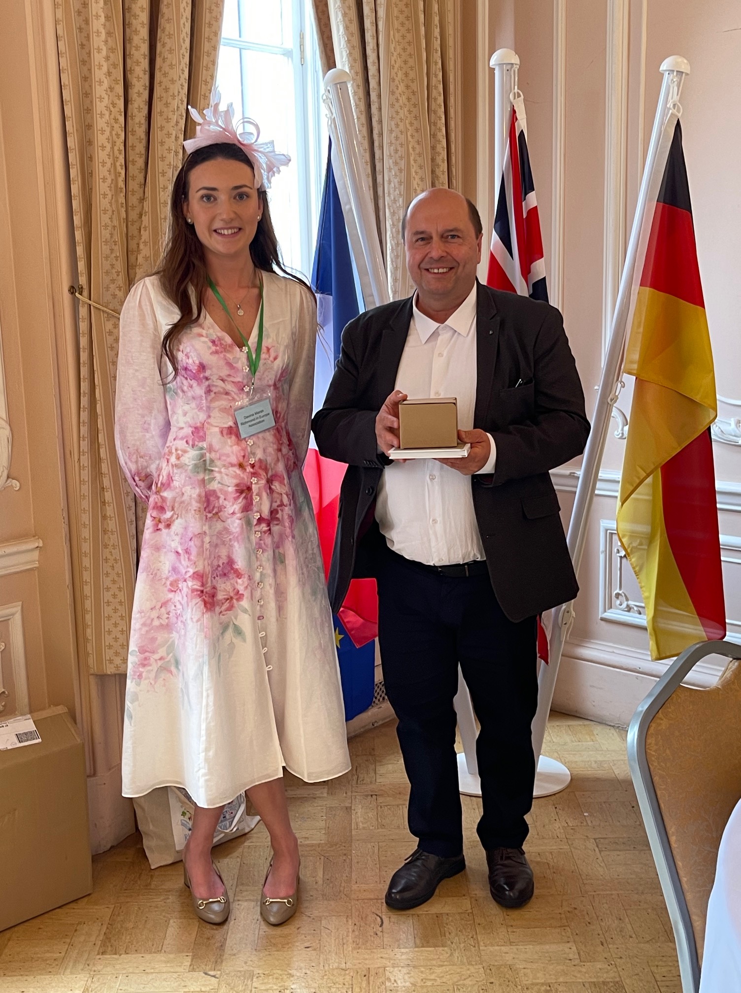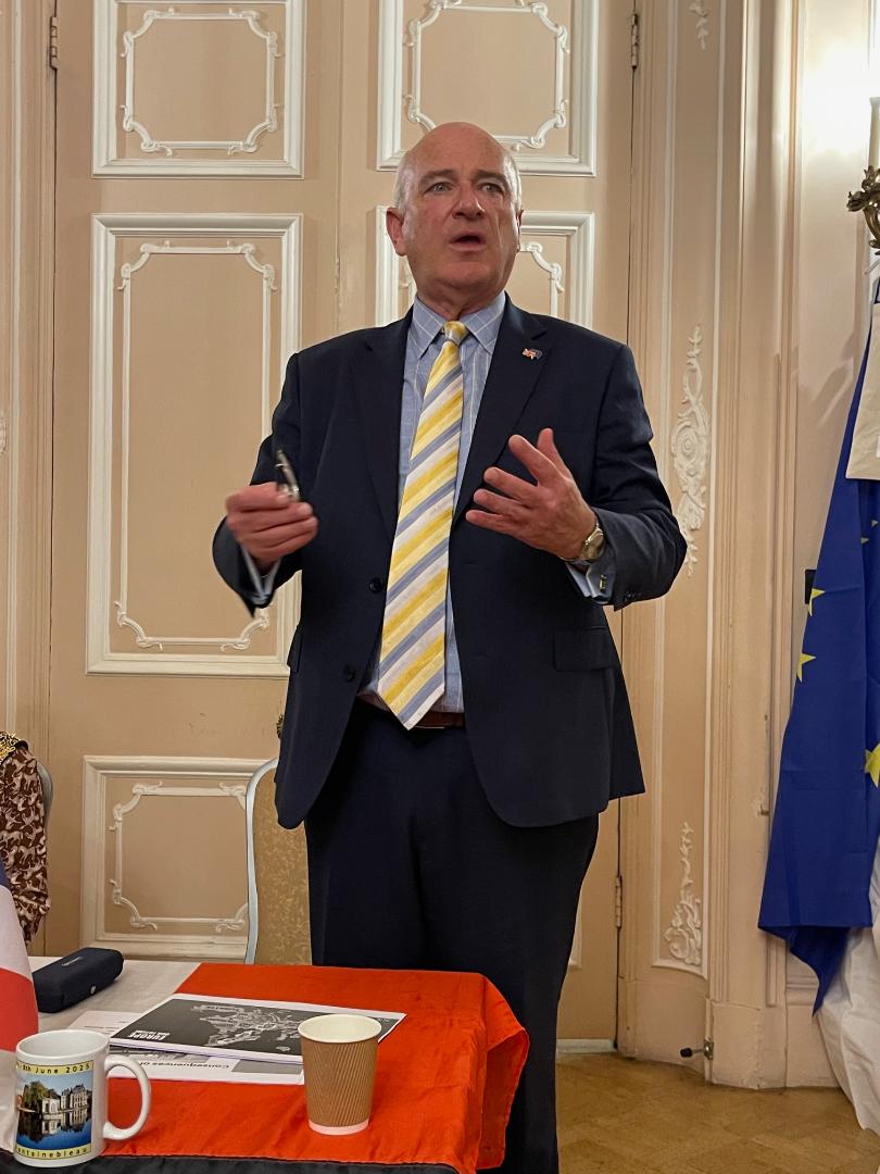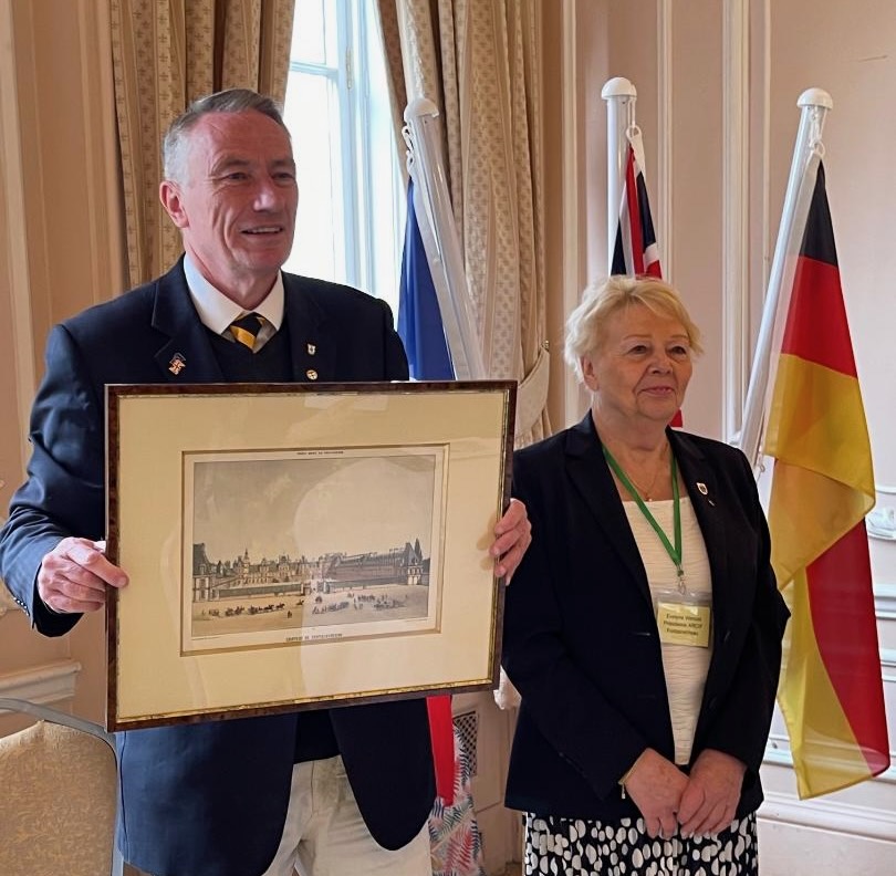 8th June 2025. Madame Evelyne Wenzel, the President of Arcif, presented REA with a beautiful picture of the château de Fontainebleau during the Reaffirmation weekend.