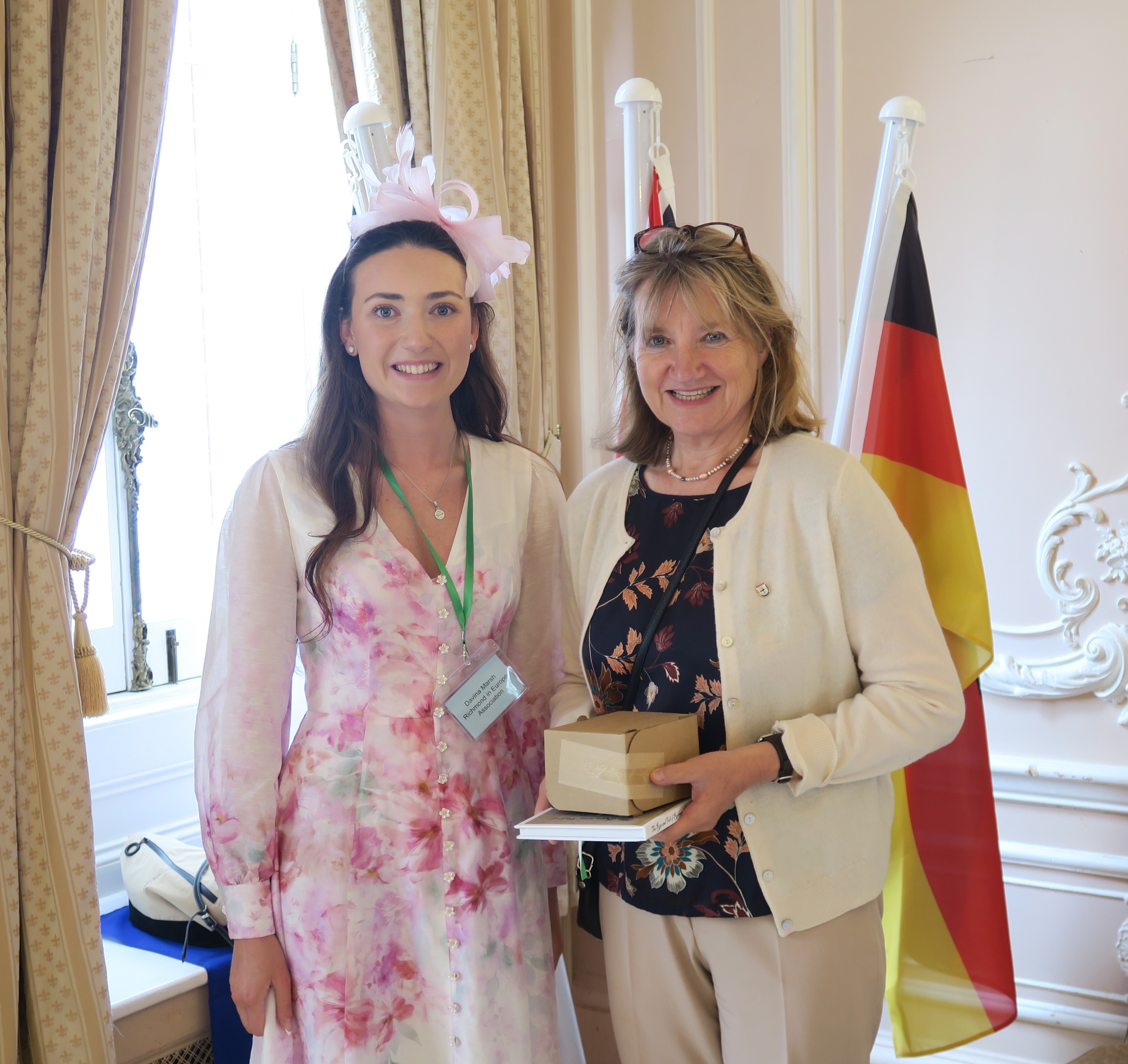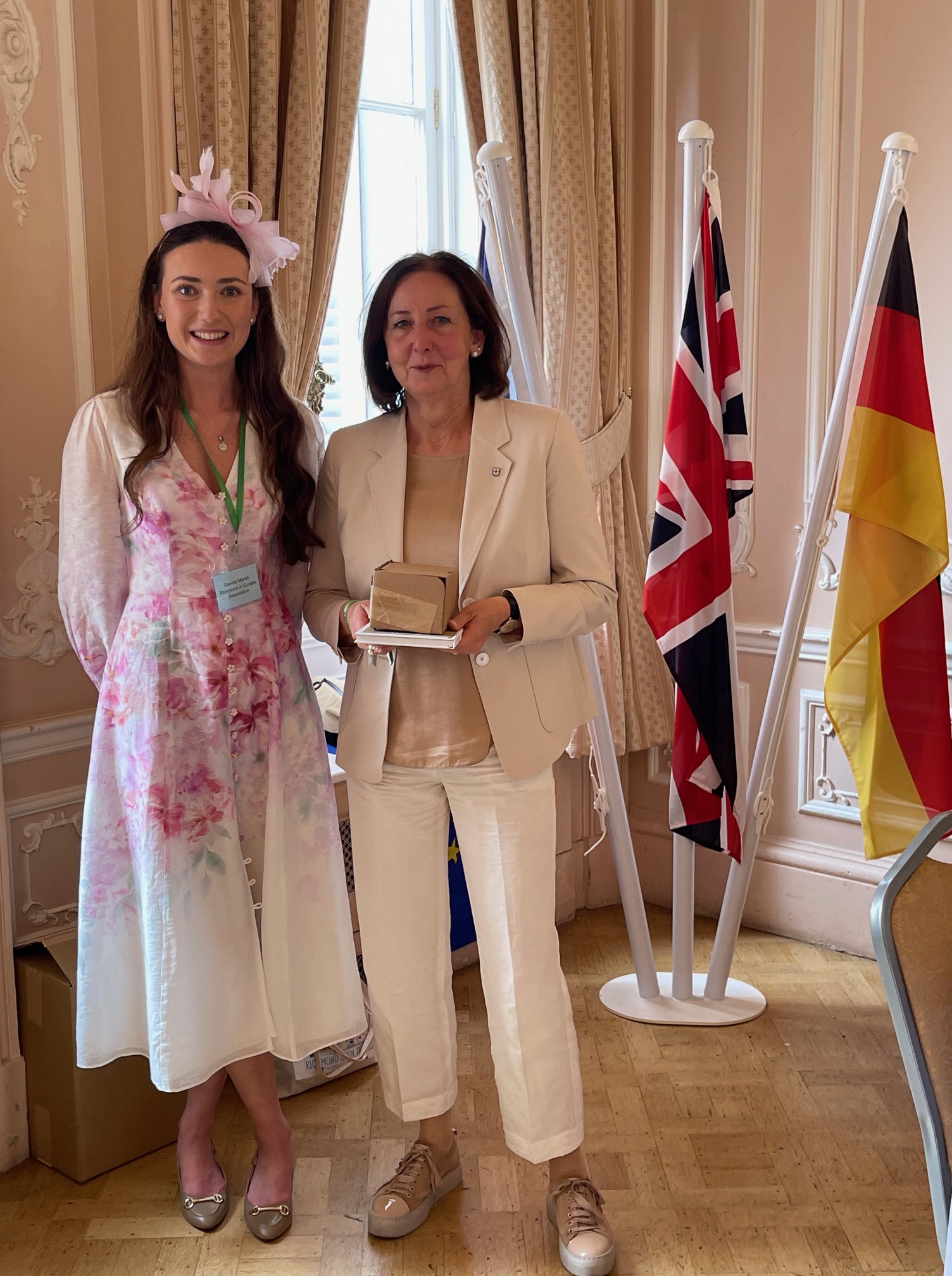 Davina’s mother, Edwina, first came with her family to Richmond from Konstanz 35 years ago for the reaffirmation in 1990. Edwina’s sister was a member of the Fechtclub Konstanz, which was twinned with Richmond & Twickenham Fencing Club. James Marsh was a member of the Fencing Club & got to know Edwina during the course of the weekend. Romance blossomed & two years later Edwina & James were married. In 1999 Davina Constance Marsh became the first twinning baby.