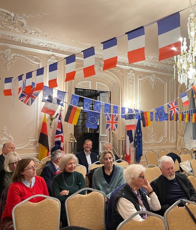 Sir Nick spoke about the disastrous effects of Brexit & the ways in which the European Movement, with its 270,000 members & supporters, is seeking to mitigate the damage. Over 60% of the public now recognise that Brexit was a mistake & the aim is to rejoin the EU once this figure reaches 70%. In the meantime significant steps are being taken to pave the way. For example next year Britain will be rejoining the Erasmus programme & a European Youth Experience scheme.